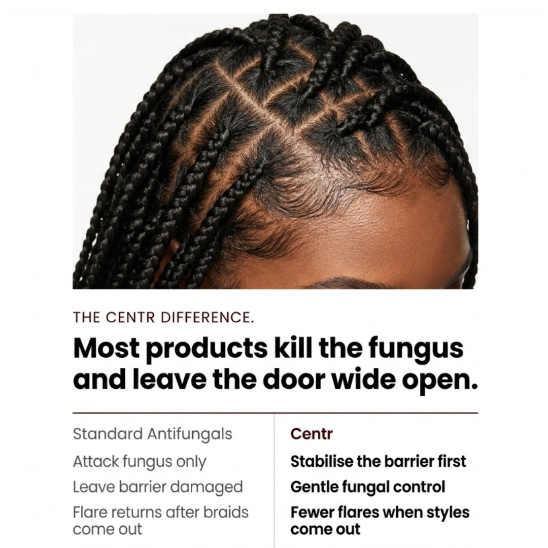 Centr stabilises the barrier first, so your scalp stops overreacting — and your flares stop coming back.